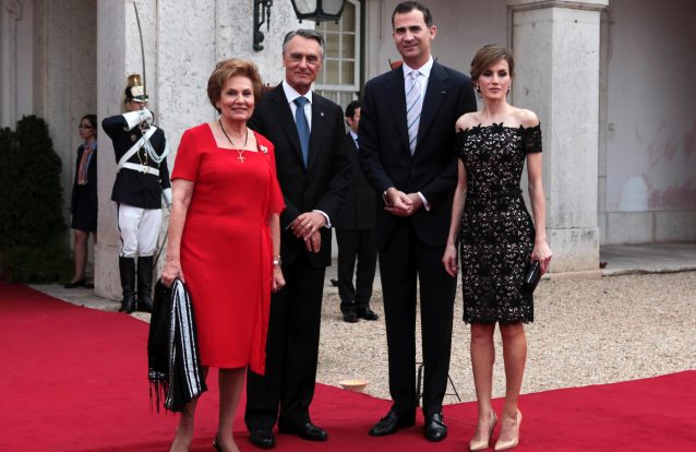 O guarda-roupa de Letizia foi mais uma vez alvo de escrutínio, mas, como sempre, passou no teste. A mulher de Felipe optou por um conjunto de calças capri em azul-marinho conjugado com um blêizer estampado em azul e negro do designer Felipe Varela, uns sapatos também em azul-marinho, uma carteira prateada com efeito pele de crocodilo e uns pequenos brincos de brilhantes.