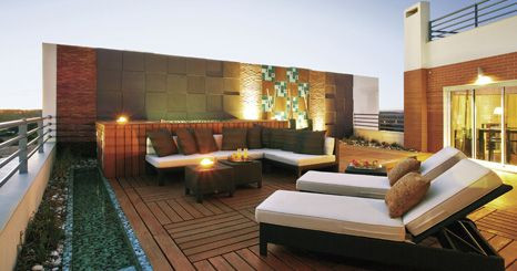 Outra boa ideia: a colocação do tapete claro na sala de estar marca o espaço junto ao móvel-estante. Sobre ele, banquetas mandadas fazer na Atmosferas. O facto de não serem quadradas dá-lhes originalidade. O pavimento das varandas, viradas ao mar e à cidade, acaba por ser um prolongamento dos interiores. Foi revestido com taco, rematado nas extremidades por fileiras de brita que desenham o rectângulo ou quadrado que a própria varanda inscreve no chão.