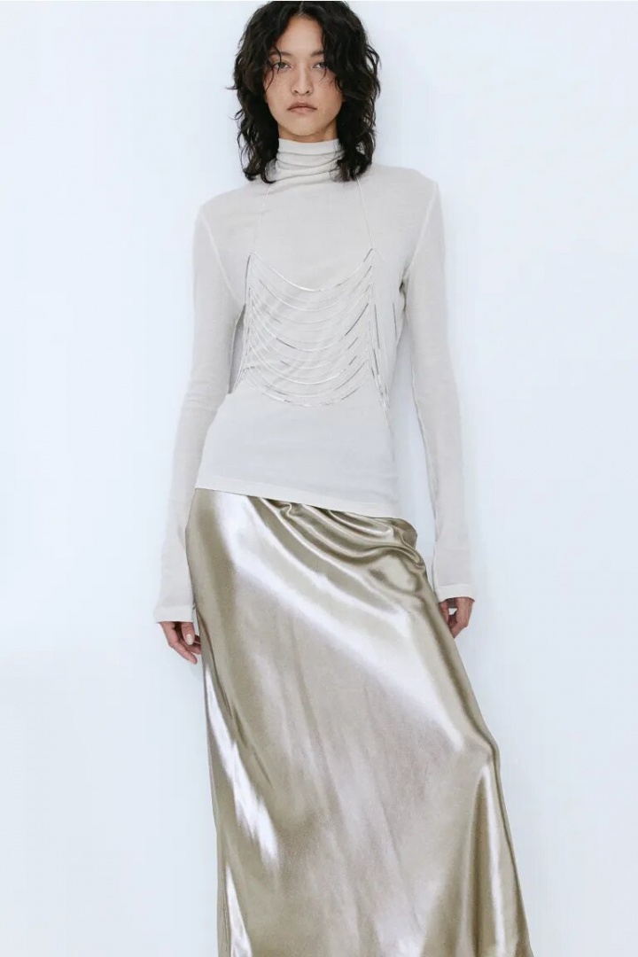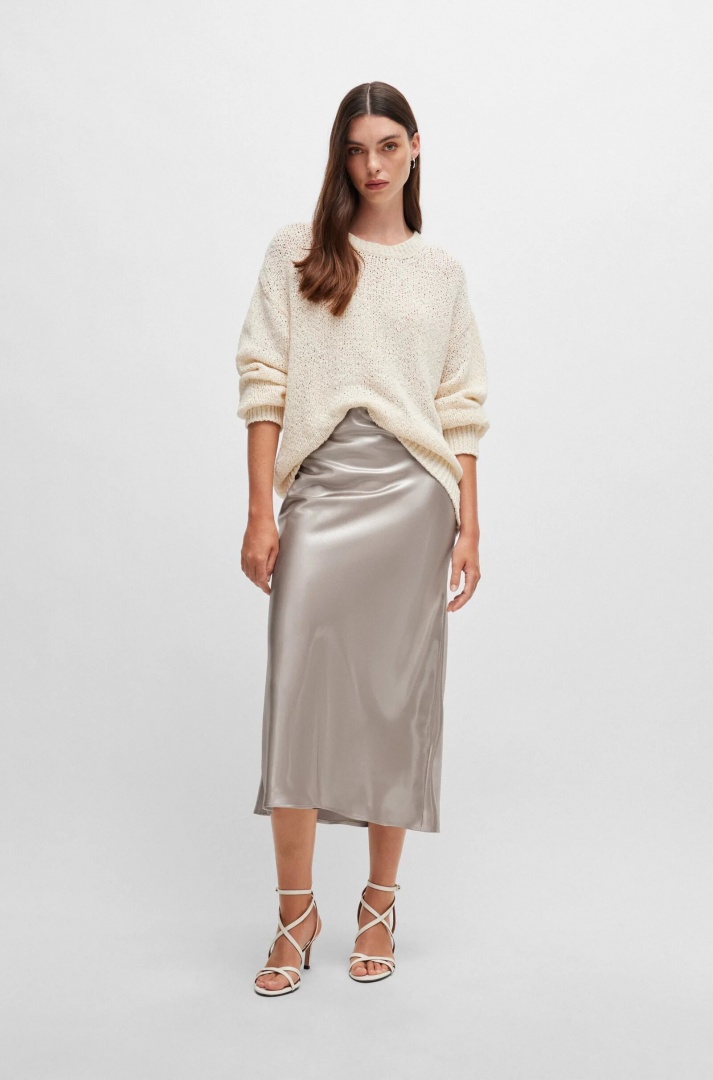 Ontem à noite, 16 de abril, no seu primeiro ato público na visita dos reis de Espanha aos Países Baixos, Letizia causou sensação graças à sua escolha de guarda-roupa. A rainha de Espanha, de 51 anos, surpreendeu com um top com ombros nus e decote Bardot e uma maxi-saia prateada em tecido de cetim líquido reflexivo da Hugo Boss, que custa €348,00.