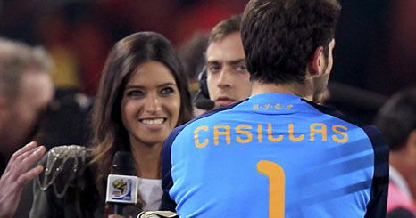 Após a vitória da Espanha na final do Mundial da África do Sul, o guarda-redes espanhol foi entrevistado para a Tele 5, pela namorada, Sara Carbonero. A emoção era tanta que Casillas não resistiu e beijou a namorada em direto. Veja o vídeo!